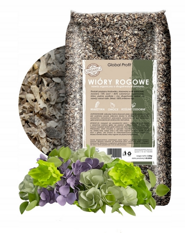 Wióry rogowe, mączka rogowa - naturalny nawóz z rogów zwierząt hodowlanych 2.5kg