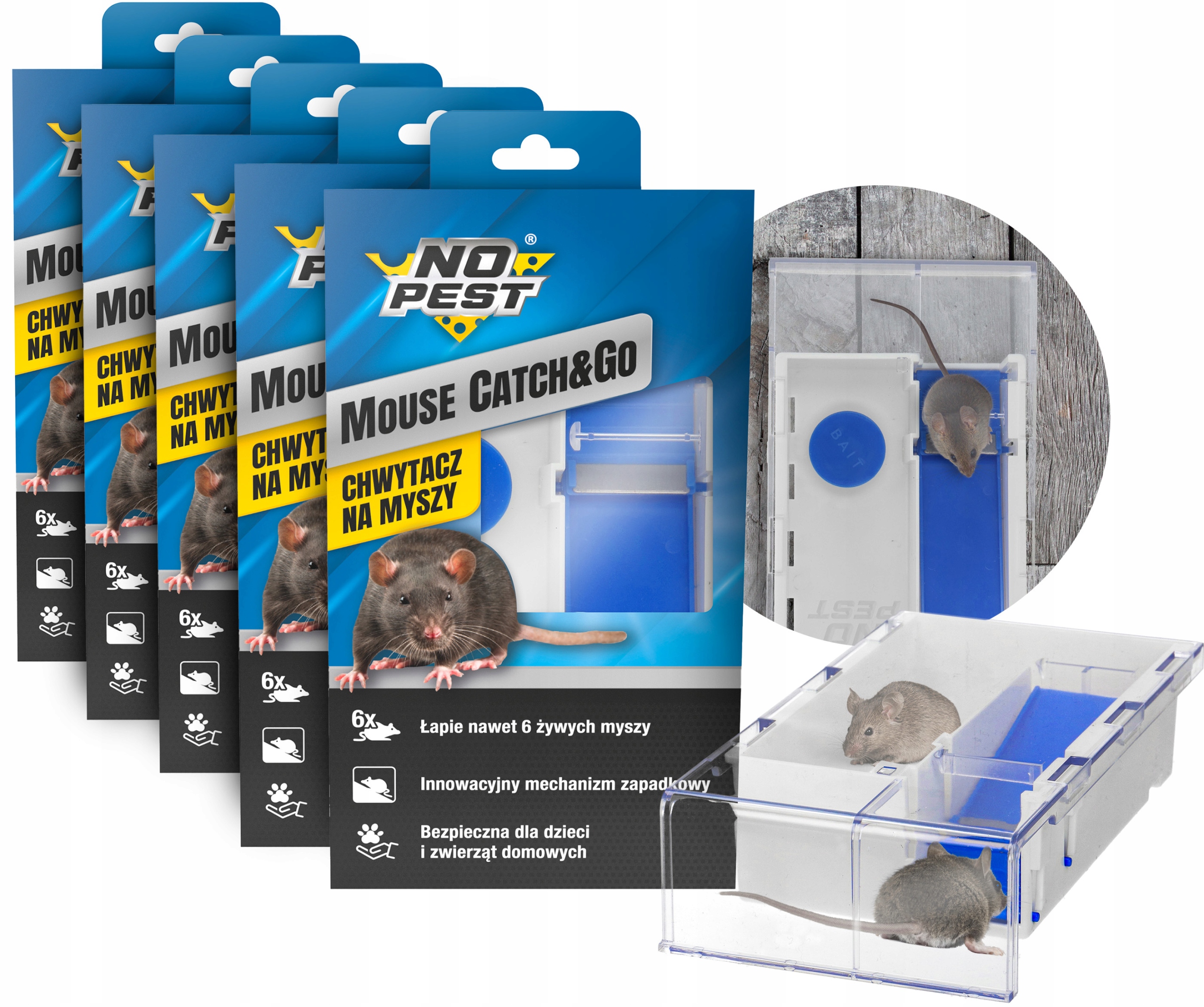 CHWYTACZ ŁAPKA ŻYWOŁAPKA PUŁAPKA NA MYSZY GRYZONIE NO PEST CATCH&GO (5 SZT)