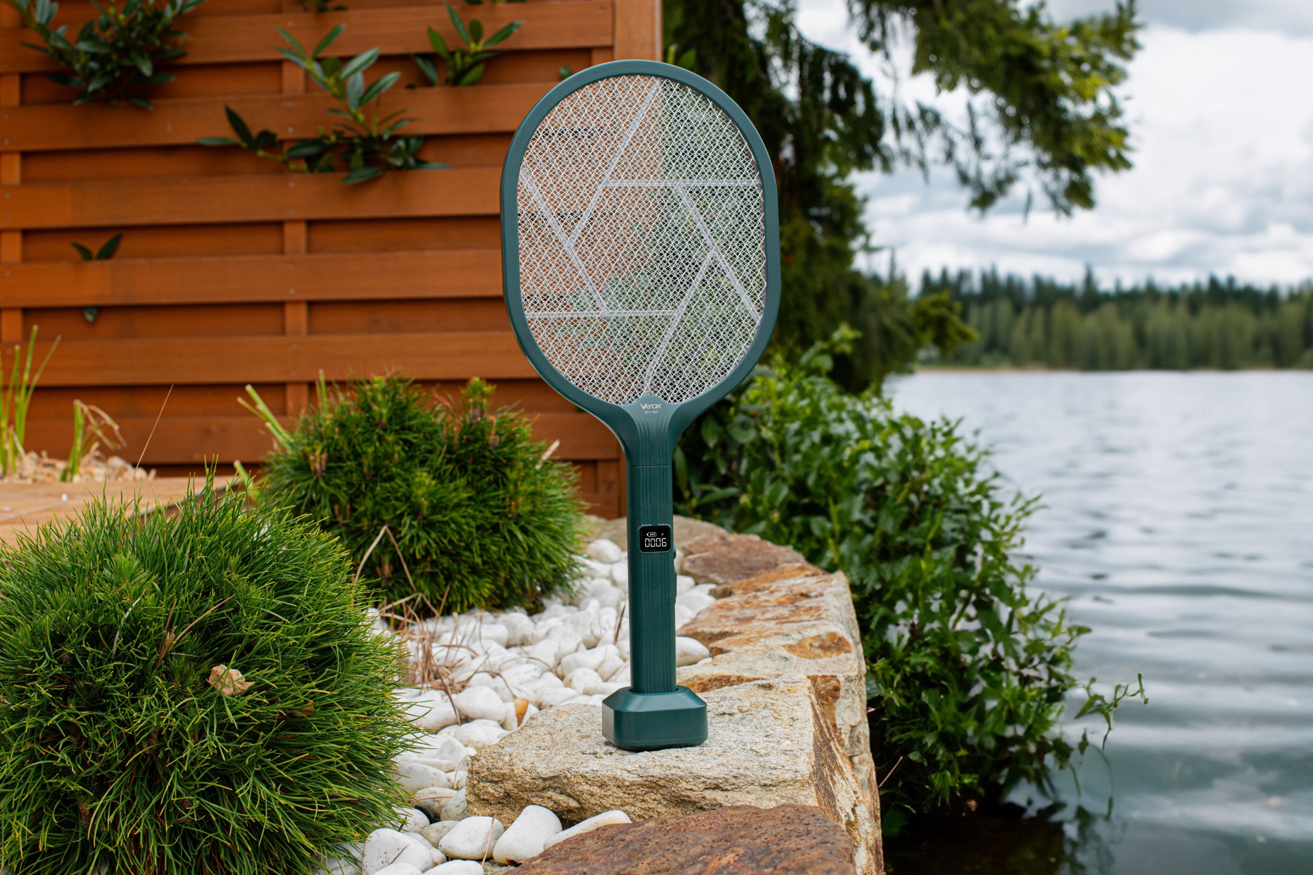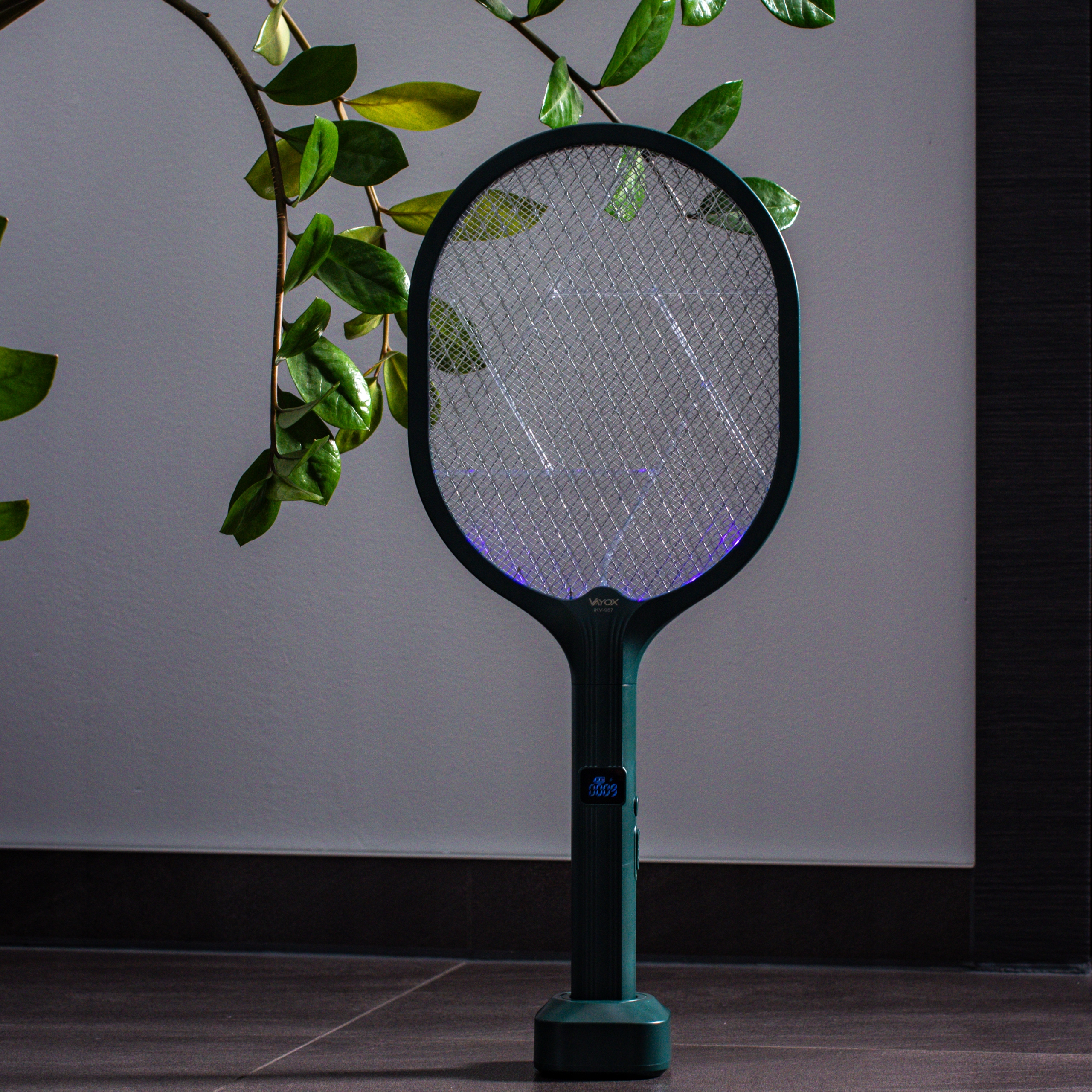 Wbudowany w rączkę wyświetlacz sumuje zabite owady oraz sygnalizujestan naładowania akumulatora w paletce. Brak energii nie zaskoczy Cię w trakcie walki z owadami!