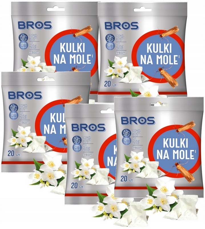 BROS Kulki Ochronne Przeciw Molom o Zapachu Kwiatowym - Długotrwała Ochrona Odzieży i Szaf - Zestaw 5x20 szt
