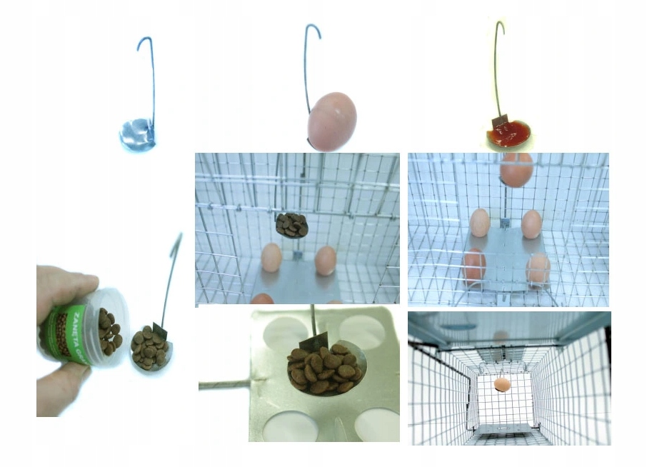 Dodatkowo tylko w naszych pułapkach można zastosować "gniazdo na jaja" - wystarczy dołożyć kilka jaj by stworzyć wrażenie gniazda pełnego jajek. Zwierzęta na to się nabierają. Wystarczy teraz wyciągnąć narożne jajo by całość się wywróciła i poruszyła mechanizm spustu i zamknęła pułapkę.