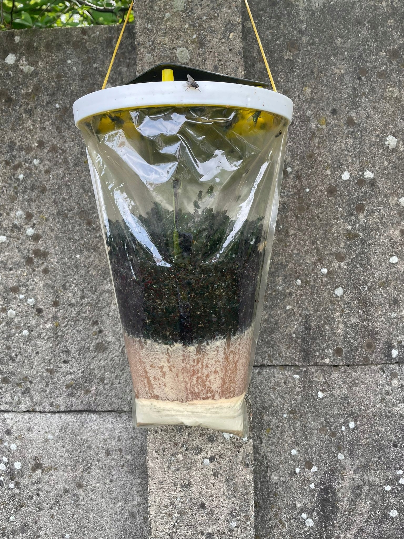 - Zawieś pułapkę w przewiewnym inasłonecznionym miejscu - tam gdzie pojawiają się muchy 1,5-1,7 m nad ziemią!
