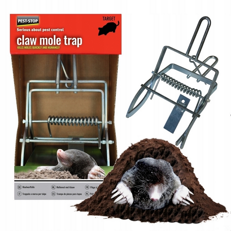 Claw Mole Trap jest to chwytacz z napinaczem na krety wykonany z ocynkowanej stali.