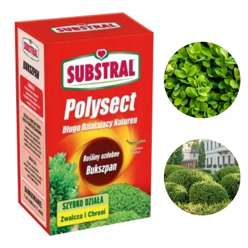 Substral Polysect Bukszpan to produkt do ochrony krzewów bukszpanu. Zwalcza ćmę bukszpanową oraz gąsienice motyli. Zapewnia szybkie efekty widoczne w 24 godziny.