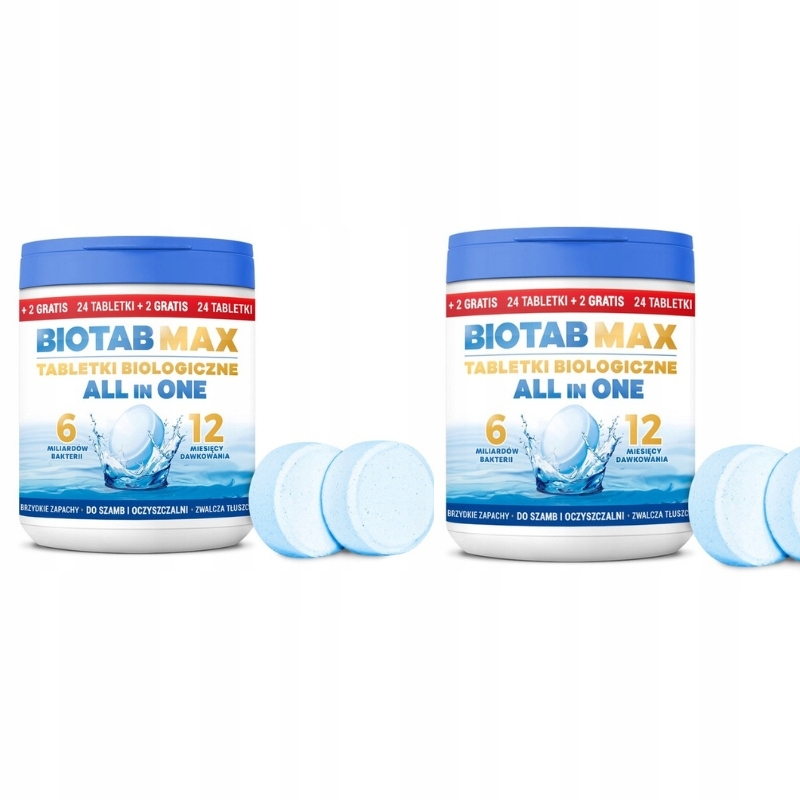 są idealnym rozwiązaniem dla osób, które korzystają z różnych rodzajów systemów oczyszczania, od zbiorników zamkniętych po standardowe oczyszczalnie z osadnikiem gnilnym i drenażem oraz bio oczyszczalnie z systemem napowietrzającym. Te tabletki eliminują nieprzyjemne zapachy, usuwają kożuch powierzchniowy, zapobiegają nadmiernemu zatłuszczaniu systemu, redukują nagromadzony osad oraz stabilizują mikroflorę biologiczną, co jest szczególnie istotne w przypadku terapii antybiotykowych, stosowania detergentów lub braku odpowiedniego natlenienia. Dla tych, którzy rozpoczynają swoją przygodę z własną oczyszczalnią przydomową, rekomendujemy wybór najmocniejszych tabletek mikrobiologicznych, czyli BioTab Max All in One, które dostarczają dodatkowy miesiąc dawkowania w zestawie 24+2 tabletek.
