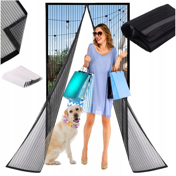 MOSKITIERA NA DRZWI MAGNETYCZNA B. MOCNA REGULOWANY ROZMIAR 100 x 210 CZARNA