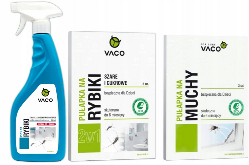 NOWY Środek Preparat Spray na RYBIKI Szare i Cukrowe VACO MAX 500ml + pułapka na rybiki + pułapka na muchy