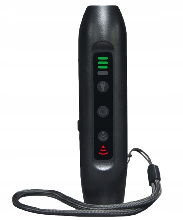 - ultradźwiękowy odstraszacz psów / treser / antyszczekacz z funkcją sygnału dźwiękowego i latarką;