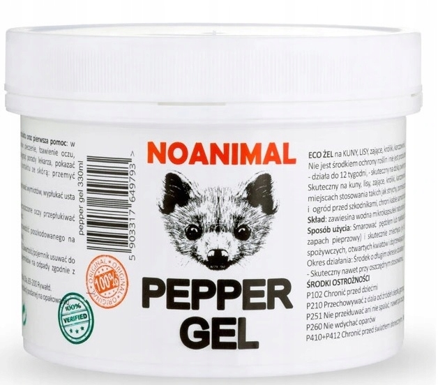 NOANIMAL PEPPER GEL to innowacyjny środek odstraszający kuny, norki, lisy, krety, wydry, szczury, myszy i inne gryzonie. Środek w postaci gęstego żelu. Kilka razy mocniejszy od tradycyjnych środków do spryskiwania. Żel jest efektem wieloletnich doświadczeń i badań nad skutecznym odstraszaczem zwierząt. To znakomite narzędzie do walki z nieproszonymi gośćmi. Dodatkowym atutem żelu jest 100% biodegradowalność. Środek jest w 100% naturalny, nie zawiera żadnej chemii, konserwantów i substancji szkodliwych dla środowiska. Środek jest kilka razy mocniejszy od tradycyjnych sprayów. Dodatkowo jego formuła jest niezwykle mocno skoncentrowana. Środek pod względem wydajności i stosowania przewyższa tradycyjny spray 10-20 krotnie.