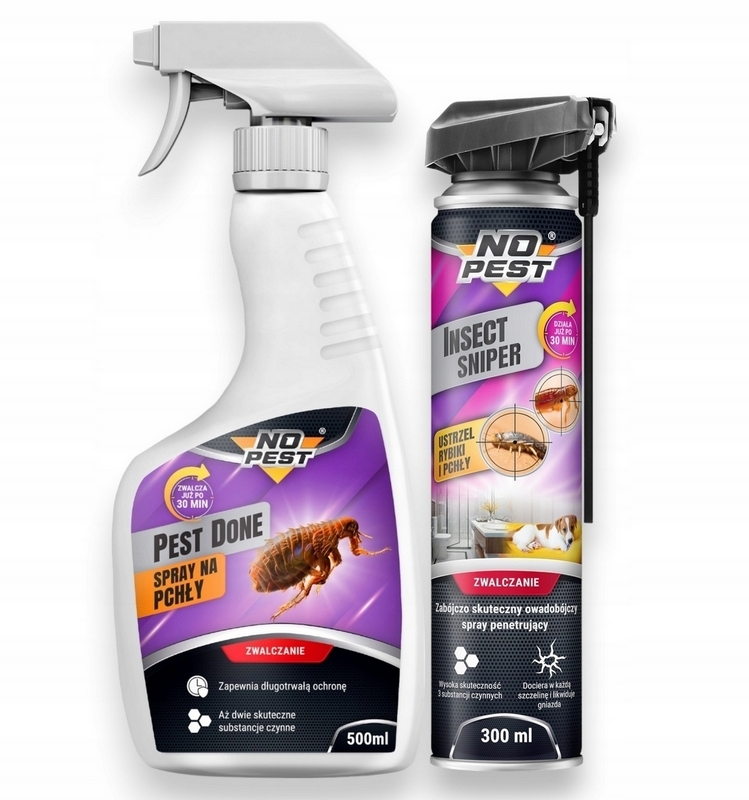 SPRAY ŚRODEK PREPARAT AEROZOL OPRYSK SNAJPER NA PCHŁY ZESTAW NO PEST 2w1
