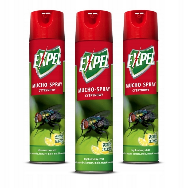 Expel Mucho-spray to preparat w aerozolu do zwalczania owadów latających w pomieszczeniach. Spray dzięki zastosowaniu aż 3 różnych substancji biobójczych szybko i skutecznie zwalcza: muchy, komary, muszki owocówki, osy i dorosłe osobniki moli odzieżowych w pomieszczeniach. Pozostawia w pomieszczeniu przyjemny, cytrynowy zapach.