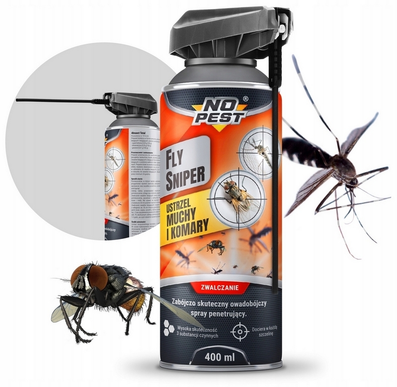 FLY SNIPER ŚRODEK PREPARAT AEROZOL OPRYSK NA MUCHY KOMARY NO PEST 400ML