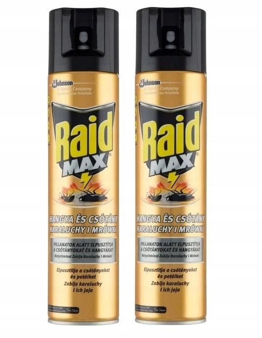 Raid Max przeciw karaluchom i mrówkom w aerozolu dzięki skutecznej formule zapewnia 3 stopniową ochronę: 1. natychmiast zabija karaluchy, mrówki i inne owady biegające, 2. na spryskanych powierzchniach zapewnia długotrwałą ochronę do 4 tygodni, 3. niszczy dorosłe karaluchy i przenoszone przez nie jaja. Wystarczy raz spryskać, aby skutecznie pozbyć się owadów.