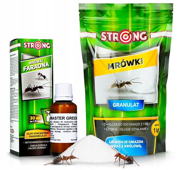 STRONG - środek na mrówki, granulat owadobójczy, trutka na mrówki 1 kg + silny koncentrat owadobójczy STRONG na mrówki faraona 30 ml