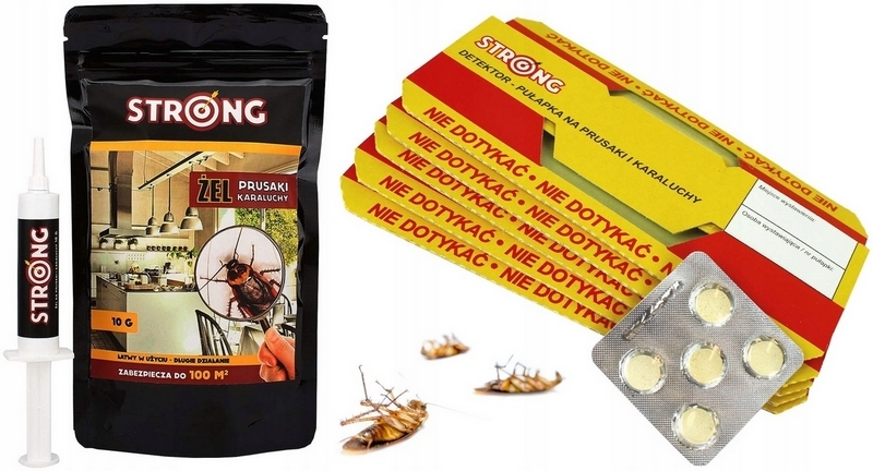 Żel STRONG jest szczególnie atrakcyjny dla karaluchów i prusaków, gdyż stanowi kombinacje bardzo skutecznej substancji czynnej ze smakowita przynętą. Jako trutka pokarmowa musi zostać zjedzony i po pewnym czasie ujawnia swoje działanie. Insekty giną w swoich kryjówkach lub gniazdach, dlatego często martwe owady wcale nie są widoczne. Niezjedzona trutka pozostaje atrakcyjna dla owadów nawet przez wiele miesięcy - chroniąc w ten sposób dany obiekt przed ponownym rozwojem populacji.