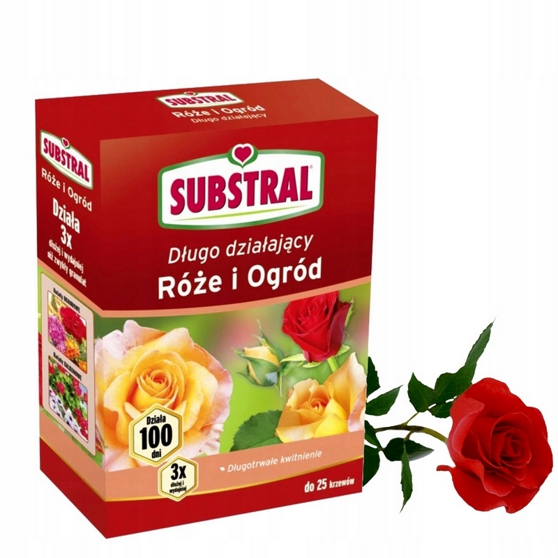 Nawóz Substral 100 dni do róż jest nawozem długo działającym, specjalnie przygotowany do zaspokojenia potrzeb kwiatów oraz roślin ozdobnych. Nawóz ten zapewnia długotrwałe efekty. Działa trzy razy dłużej niż tradycyjny granulat, aż trzy miesiące, dzięki temu wystarczą 1-2 zastosowania na sezon.