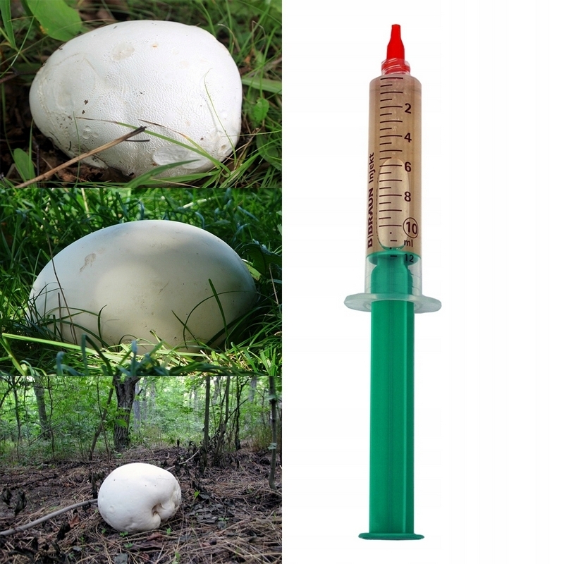 - za pomocą strzykawki można łatwo wstrzyknąć żywą grzybnię (zaszczepić) do wybranego substratu przez co ryzyko zanieczyszczenia jest mniejsze, ponieważ grzybnia pochodzi ze sterylnego środowiska