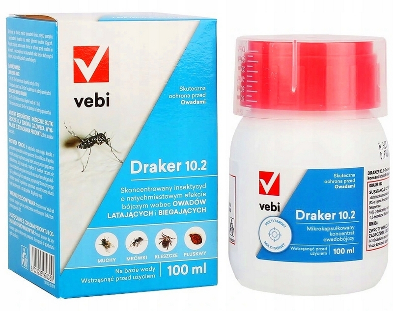 Środek owadobójczy Draker o silnym działaniu biobójczym przeznaczony do wykonywania oprysków na owady w zaawansowanych działaniach dezynsekcyjnych. Przeznaczony do zwalczania owadów latających: much, much końskich, komarów tygrysich, biedronek azjatyckich, ochotkowatych (powierzchnie porowate, gładkie) oraz biegających: karaczanów, rybików cukrowych oraz trojszyków (powierzchnie gładkie).