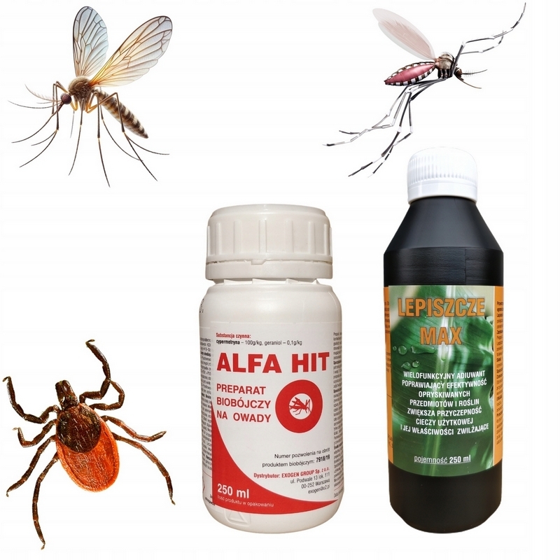 OPRYSK na KOMARY KLESZCZE Alfa Hit Super Mocny + UTRWALACZ Lepiszcze MAX