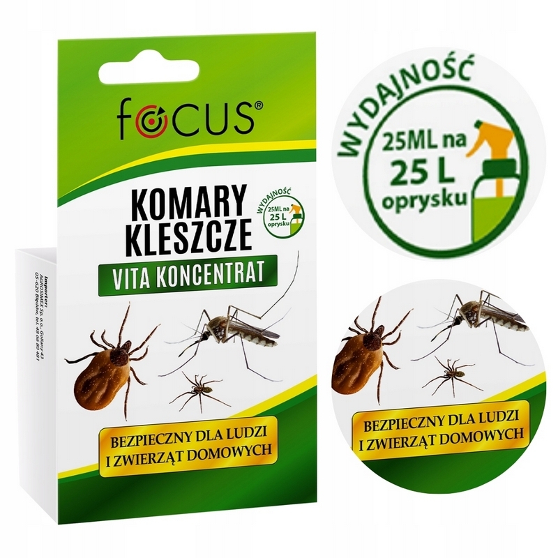 - Tekutý prípravok proti kliešťom, komárom a pavúkom Focus 25 ml