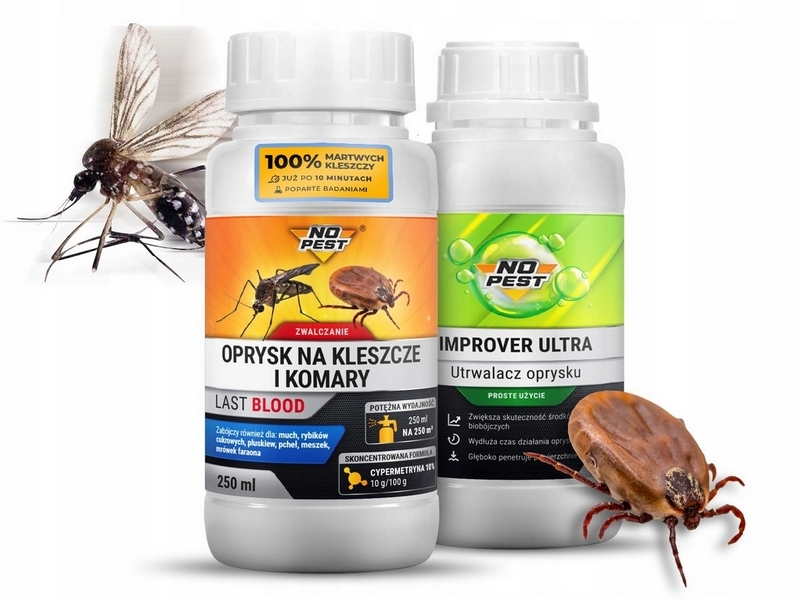 Skuteczny oprysk na kleszcze - Silny zestaw przeciw kleszczom Last Blood NO PEST 250 ml. Utrwalacz oprysku w zestawie!