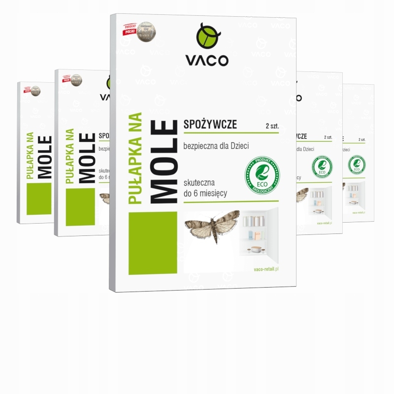 5x EKOLOGICZNA PUŁAPKA NA MOLE SPOŻYWCZE FEROMONY 2 SZT. VACO ZESTAW