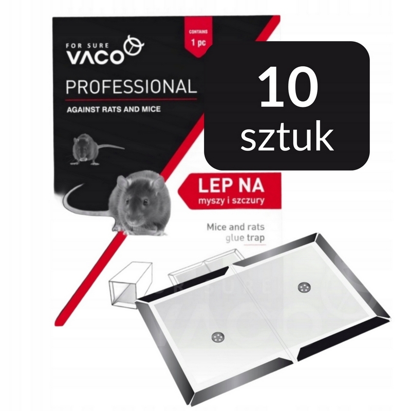 10x DUŻY Lep na myszy i szczury VACO PRO. Rozmiar pojedynczego rat/mouse booka to 21x15x1cm.