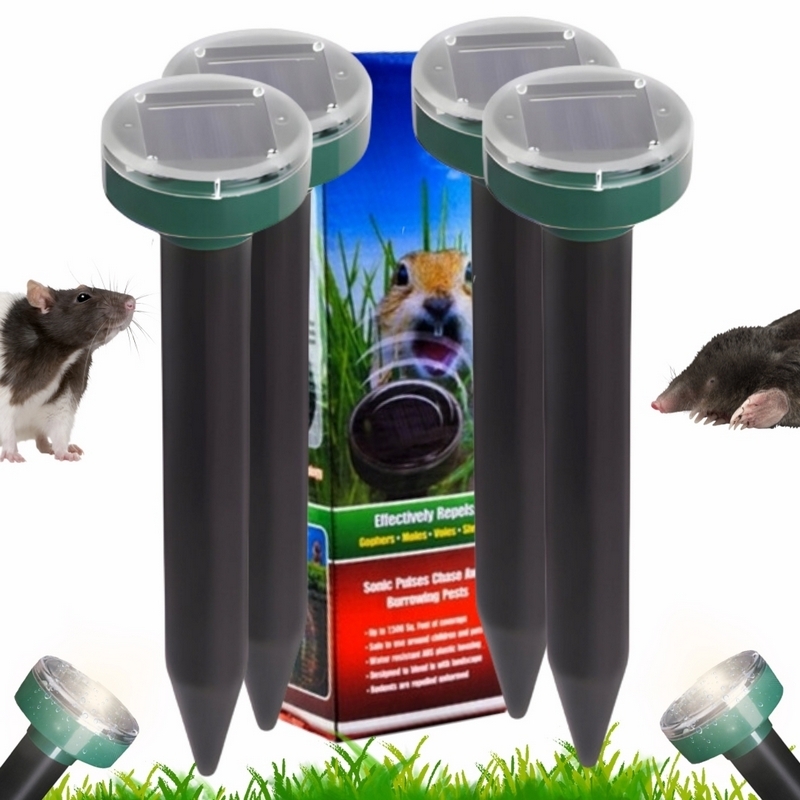 SOLARNY ULTRADŹWIĘKOWY ODSTRASZACZ NA KRETY NORNICE, GRYZONIE I WĘŻE ZESTAW 4 SZTUKI ZASIĘG DO 3400M2