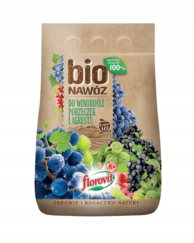 Florovit Pro Natura BIOnawóz do winorośli, porzeczek i agrestu - to granulowany, zawierający wyłącznie naturalne składniki nawóz BIO, przeznaczony do nawożenia winorośli, porzeczek i agrestu.