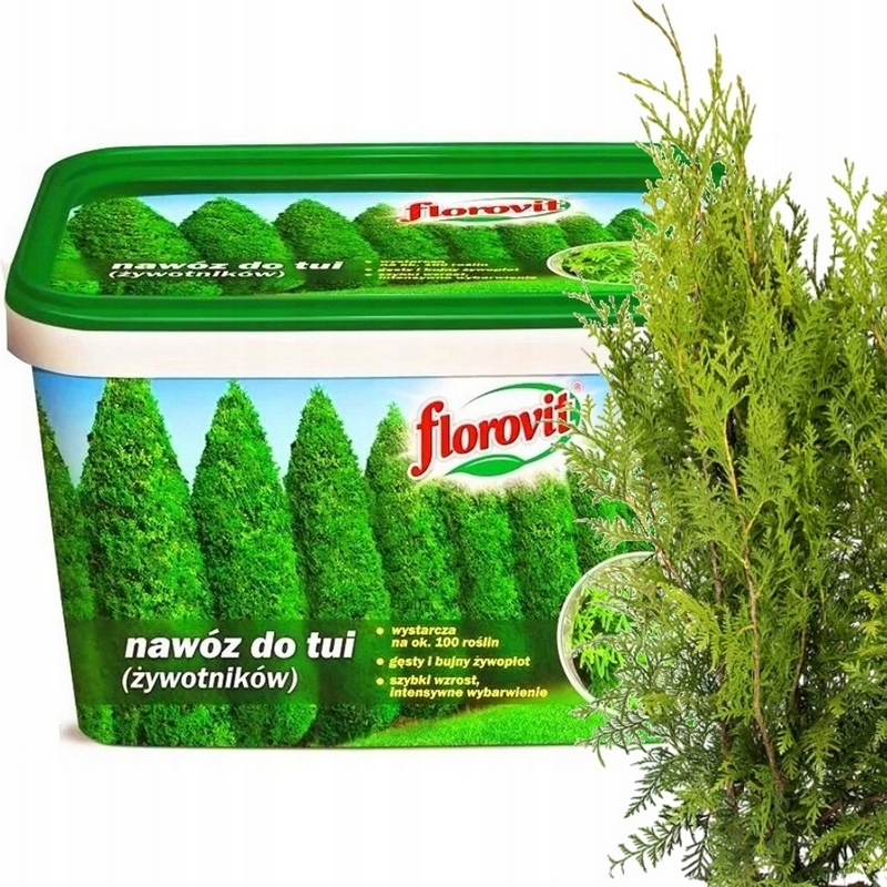 Florovit nawóz do tui (żywotników) zawiera składniki pokarmowe w odpowiednich formach i ilościach, dostosowanych do wymagań pokarmowych tui.