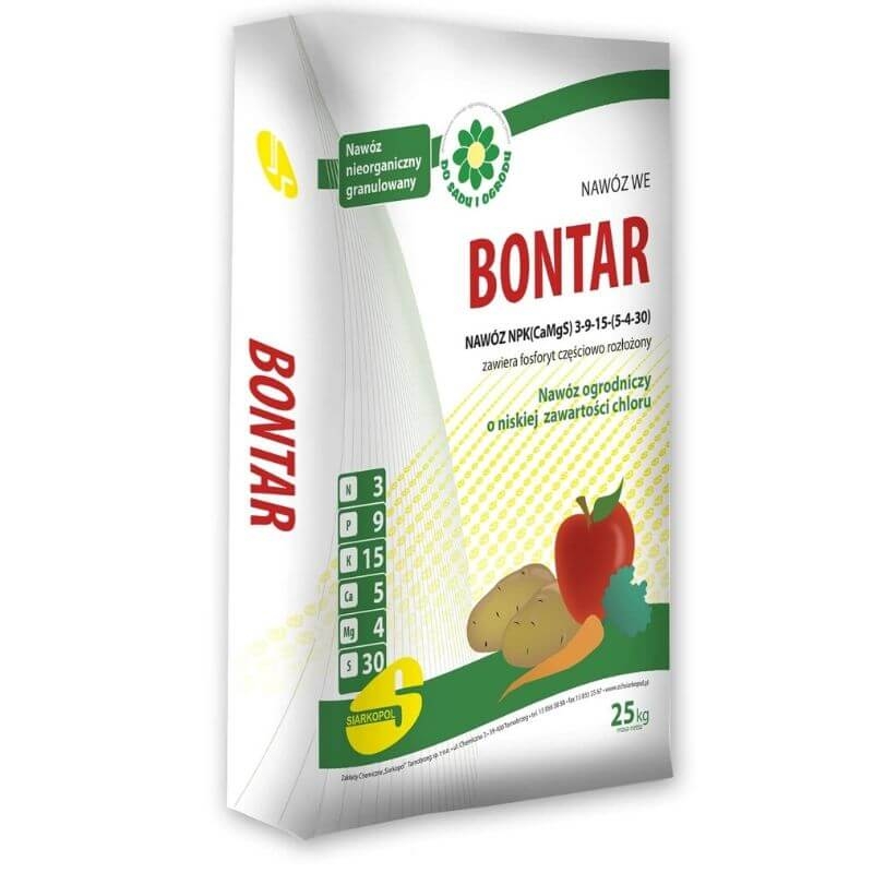 Nawóz granulowany Bontar zawiera potas wyłącznie w postaci siarczanowej. Posiada niską zawartość chlorków, dzięki czemu może być stosowany do nawożenia np. ziemniaków czy drzew i krzewów owocowych. Zawarte w nawozie składniki mają korzystny wpływ na wzrost i rozwój roślin, a także finalnie na ich jakość.