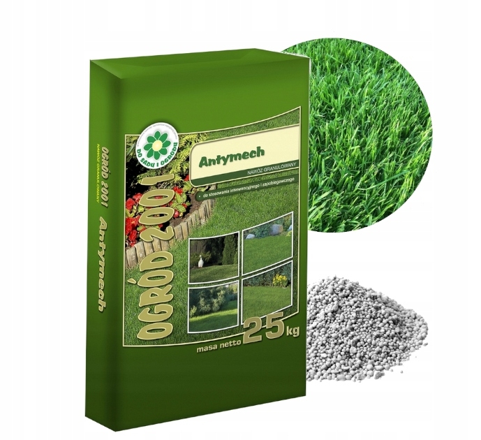 Ogród 2001 Antymech przeciwdziała porostowi mchu. Nadaje się do nawożenia wszystkich odmian traw, szczególnie trawników ozdobnych, reprezentacyjnych i intensywnie używanych.