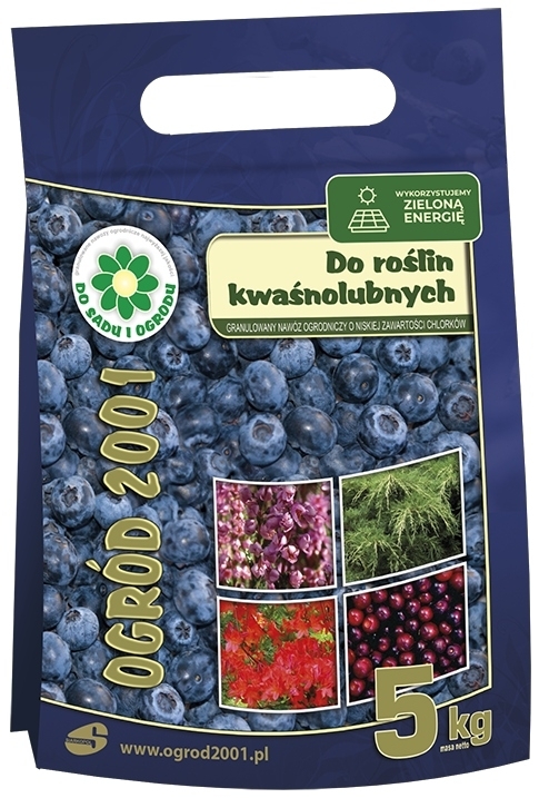 OGRÓD 2001 do roślin kwaśnolubnych jest ogrodniczym nawozem specjalistycznym, dostosowanym do wymagań pokarmowych borówki i innych roślin kwaśnolubnych takich jak: żurawina, brusznica, wrzosy, rododendrony, hortensje i inne.
