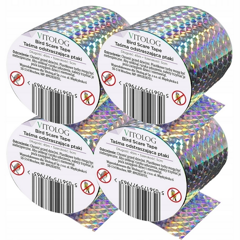 Prosty i ekologiczny sposób odstraszania ptaków. Innowacyjna metoda odstraszania taśmą hologramową. Powierzchnia taśmy odbija świtało i wytwarza nieprzyjemny metaliczny dźwięk dla ptactwa.